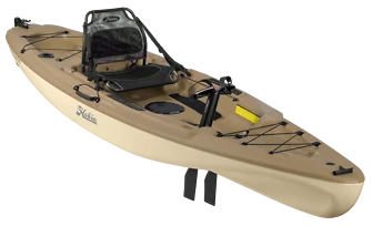 The 12-foot Mirage Passport takes you where you want to go with ease and world-class authority with the revolutionary MirageDrive with Glide Technology and Kick-Up Fins. When you’re not relaxing in the Passport’s breathable mesh seat, a wider cockpit area with EVA floor padding provides a stable platform for standing and stretching your legs or casting a lure. There’s plenty of real estate to stash equipment on the bow or stern cargo areas and more below deck access through the center 8” Twist-n-Seal hatch. Anglers will love our stealthy Bay Sand color and will be happy that the Passport 12 has a transducer cavity and scupper for simple install of your favorite fishfinder. All this on top of a Power-Pole® Micro bracket indent to mount your favorite shallow water anchor. Additional features include steering system with stowable rudder, two fishing rod holders, accessory tracks, and under seat and gunnel tackle storage.