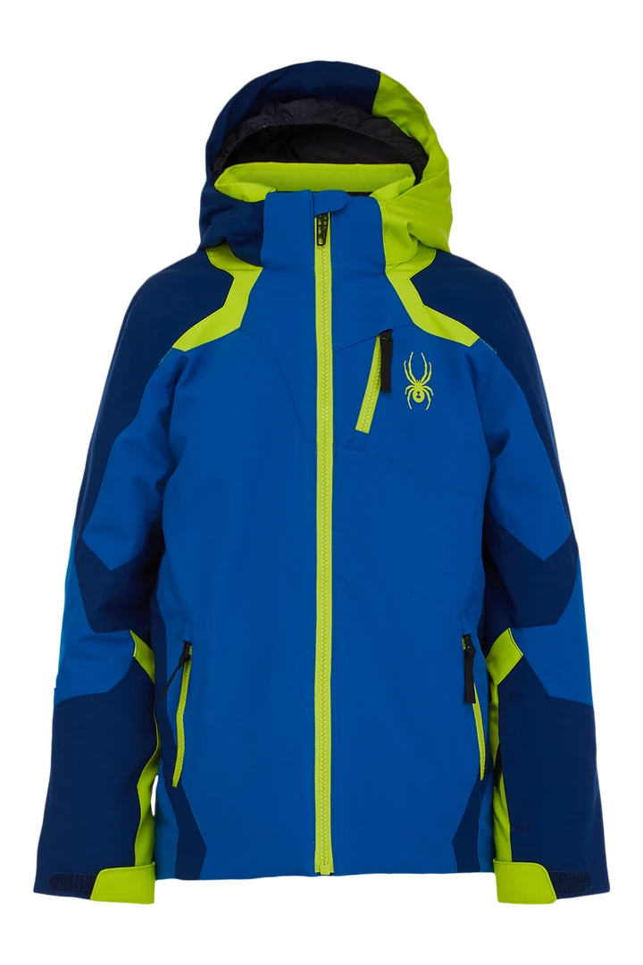 OUR BEST-SELLING CLASSIC, THE LEADER JACKET IS GEARED FOR THE BUDDING ALPINE SKIER. WITH GUSSETED “ROOM TO GROW” CUFFS THAT EXTEND UP TO 1-1/2 INCHES, REMOVABLE HOOD WITH INNER GAITER, WATERPROOF WITH CRITICALLY TAPED SEAMS AND 10K/10K STRETCH RECYCLED REPREVE ® LAMINATE AND DWR, ALONG WITH A WARM LAYER OF 133G PRIMALOFT® BLACK ECO INSULATION, YOUR LITTLE HOT SHOT WILL LEAD THE PACK IN HAPPY COMFORT NO MATTER WHAT THE WEATHER BRINGS.