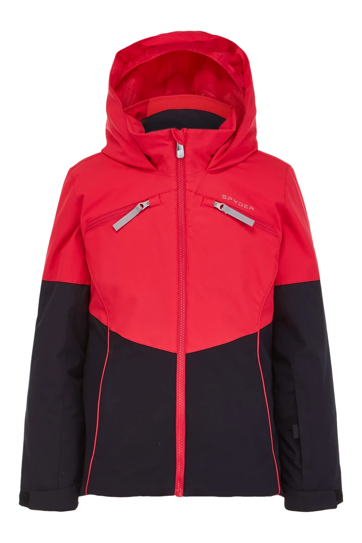 COMBINING SYNTHETIC DOWN INSULATION WITH RECYCLED REPREVE® POLYESTER OUTER, THE ATLAS IS OPTIMIZED TO KEEP GIRLS WARM AND DRY WHEN MOUNTAIN WEATHER MOVES IN AND TEMPERATURES DROP. A 10K/10K LAMINATE WITH ADDITIONAL DWR CREATES WEATHERPROOF PROTECTION AND SYNTHETIC DOWN TRAPS WARMTH. A REMOVEABLE HOOD WITH DETACHABLE FAUX FUR AND HOLOGRAM VISLON® ZIPPERS ARE THE SPYDER EXTRAS THAT WILL POP ON THE PODIUM.
