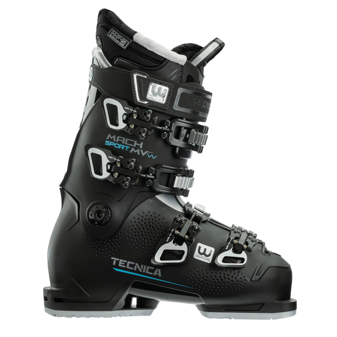 A ski boot that delivers comfort and confidence, the new Mach Sport MV 85 W is designed for intermediate female skiers with average-volume feet. Women’s specific features include the C.A.S. Cuff Adapt System, which quickly and easily adjusts volume around the calf to fit a variety of lower leg shapes, and the Women’s Natural Stance, which places you in a perfectly balanced position. An anatomically-shaped NFS liner offers warmth and a comfortable, secure fit. If needed, you can also add personal customization with Tecnica’s C.A.S. system to solve any additional fit problems. An 85 flex provides pain-free support, while the Double Quick-Instep and Lift-Lock buckles make for easy entry and exit. The Mach Sport MV 85 W combines the comfort needed to keep you on the mountain longer with the performance required to take your skiing to the next level.